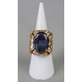 18ct gold very large synthetic sapphire set ring - Approx 9....
