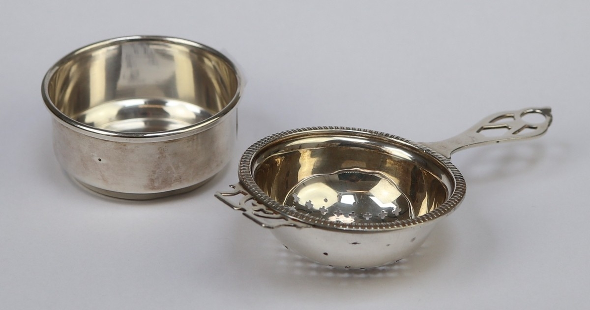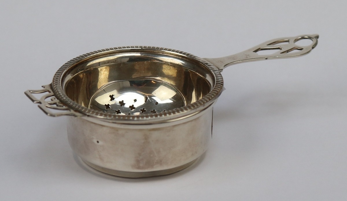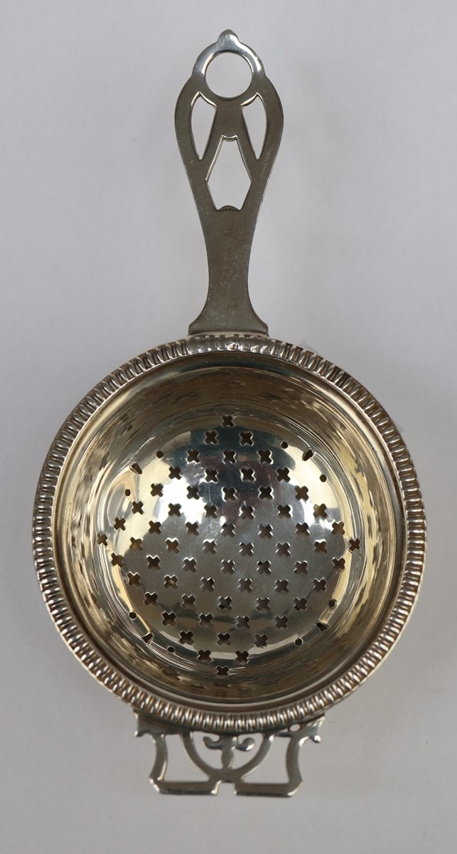 Hallmarked silver Elkington & Co tea strainer - Approx 66g