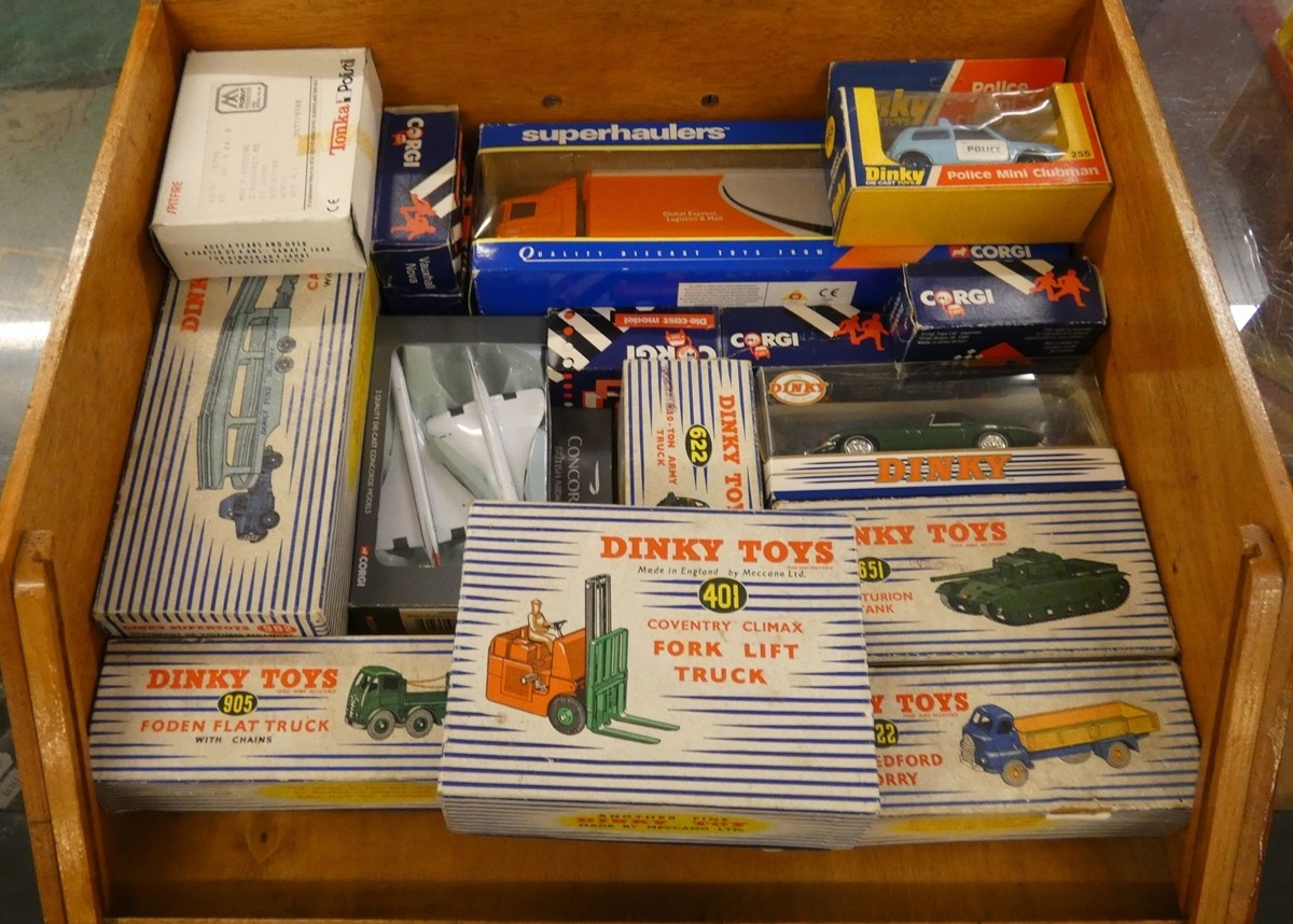 Collection of die cast vehicles to include 1950s boxed die-cast vehicles in original boxes