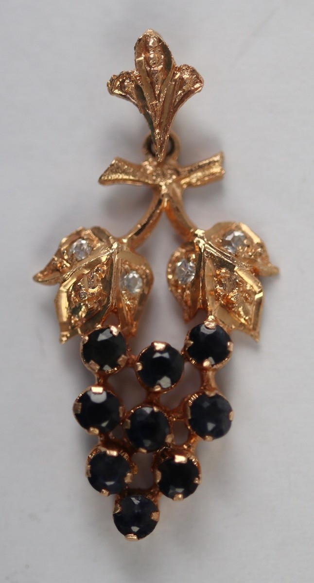 14ct gold sapphire and CZ set pendant - Approx 2g