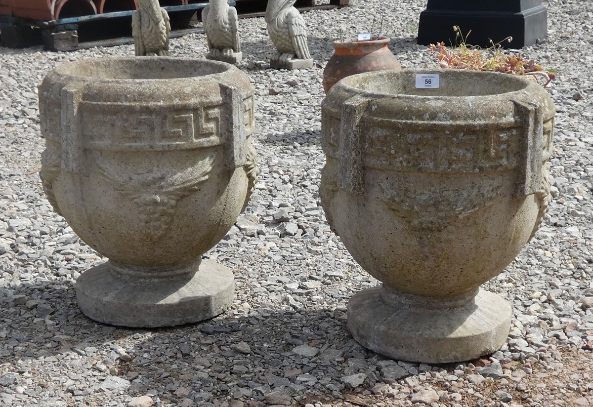 Pair of stone pedestal planters depicting grapes - Approx he...