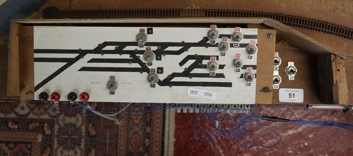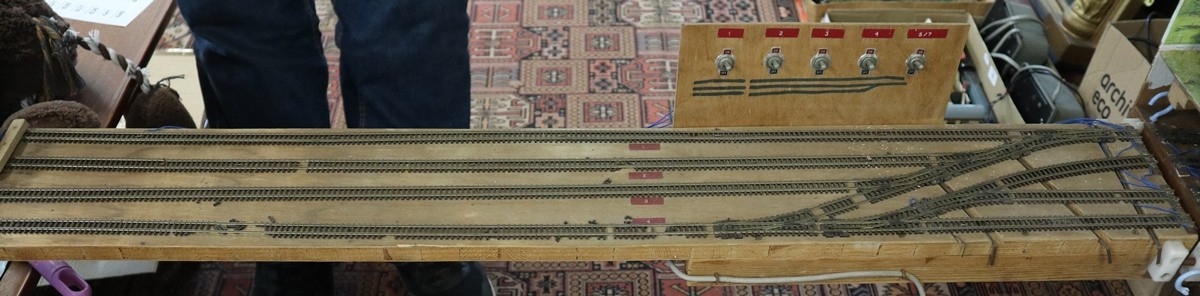 There are about 18 points, 12 of which are electric & appear to be operational, plus 6 manual points (in the fiddle yard). There are also around 20 switches, (mostly labelled).