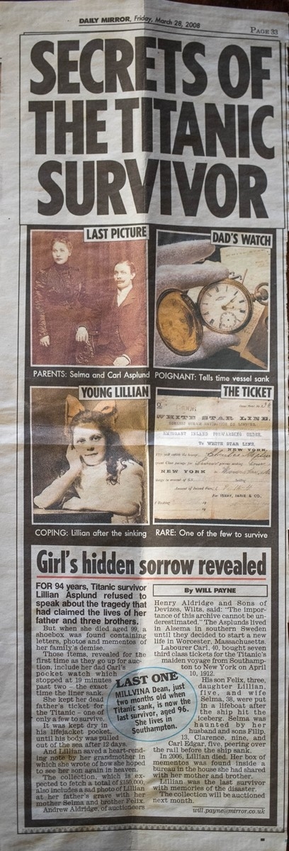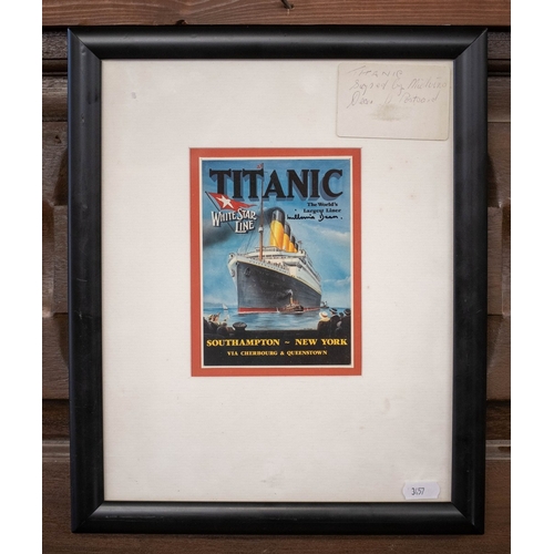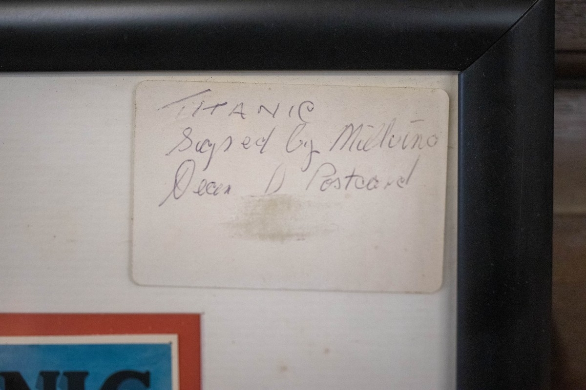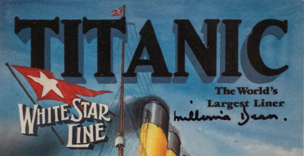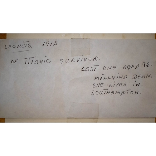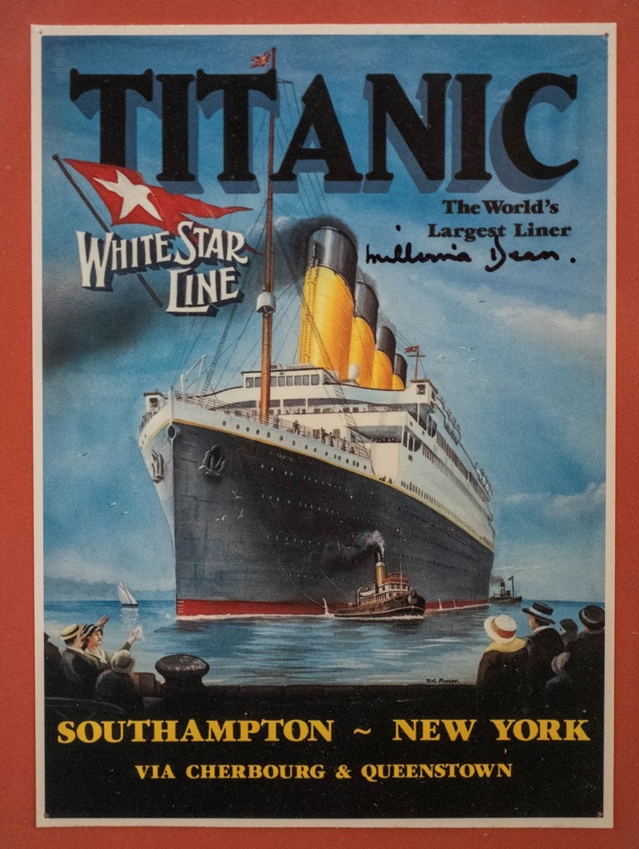 Signed Titanic postcard signed by Millvina Dean at the Titanic Exhibition, Dudley, 1996. At the time Millvina was the sole survivor. She was just 2 months old when the Titanic sank in 1912. Millvina passed away in 2009 aged 97. Postcard size is 10cm x 14cm