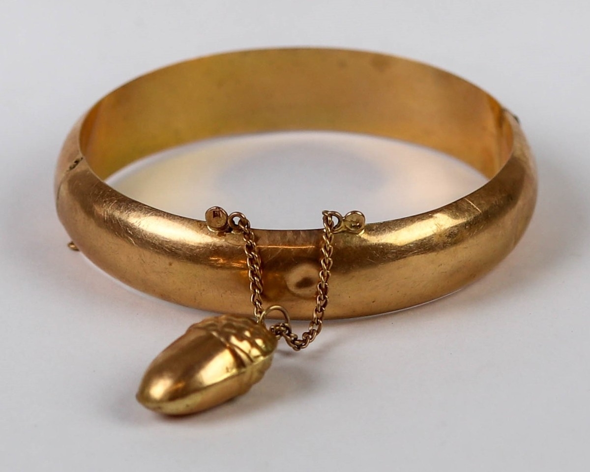 14ct gold bangle with 14ct gold acorn pendant - Approx 16g