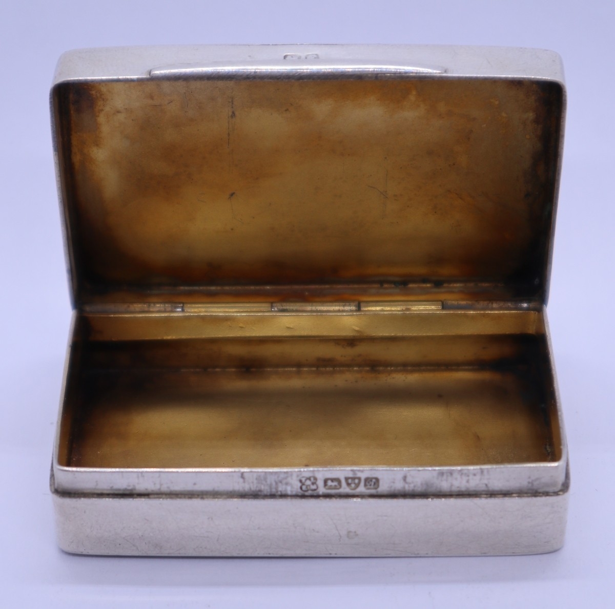 Antique hallmarked silver box with gilt interior - Approx weight 63.8g