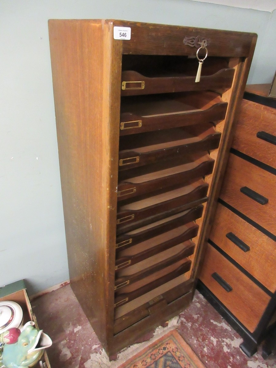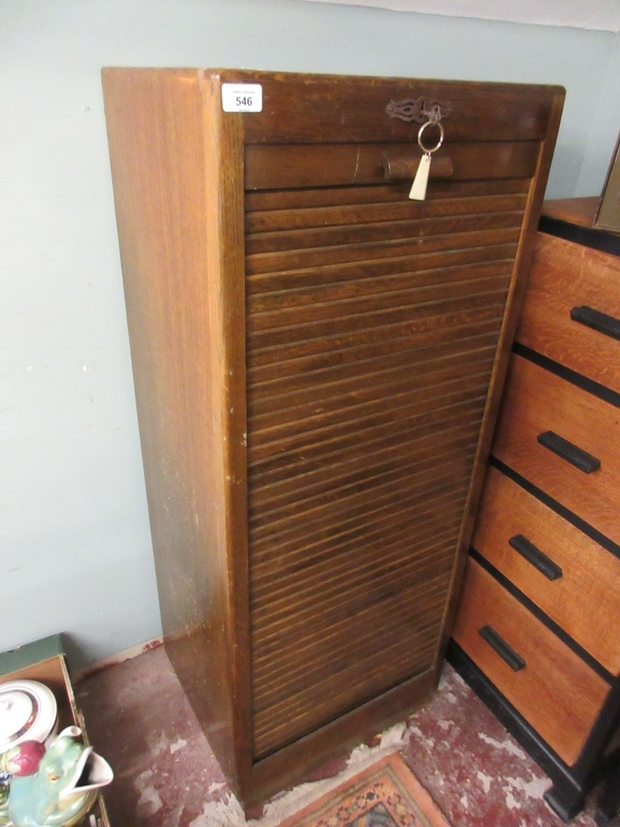 Tamber fronted filing cabinet with key - W: 46cm D: 38cm H: 118cm