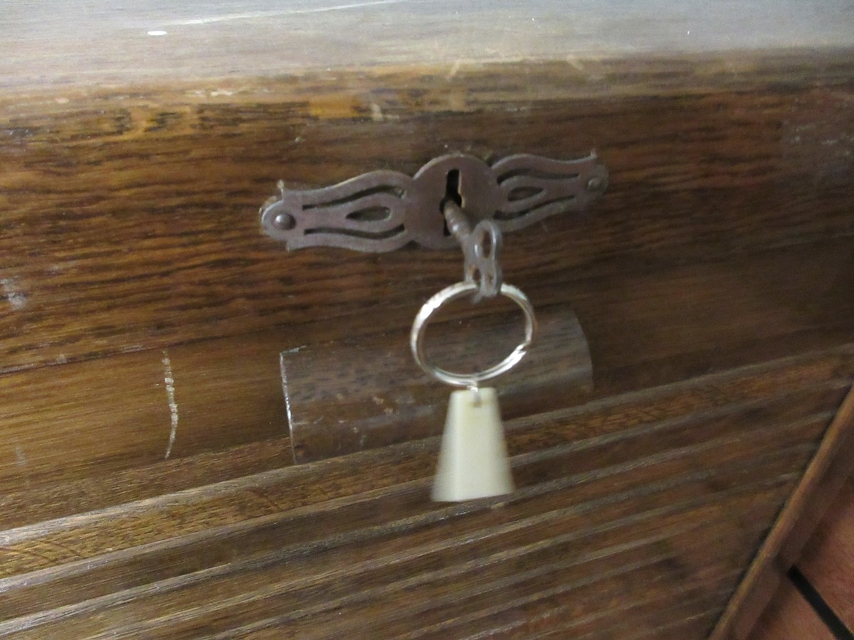 Tamber fronted filing cabinet with key - W: 46cm D: 38cm H: ...