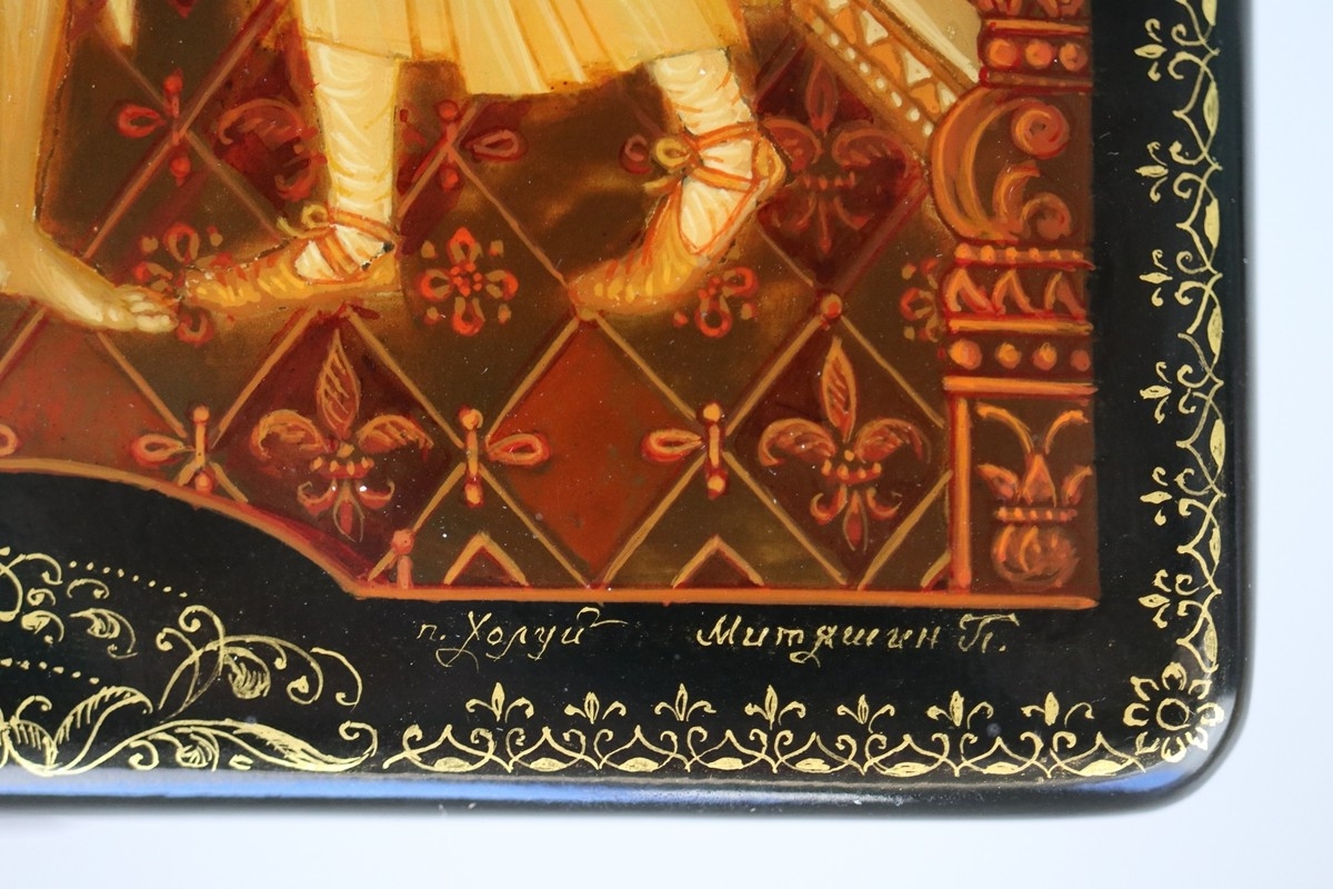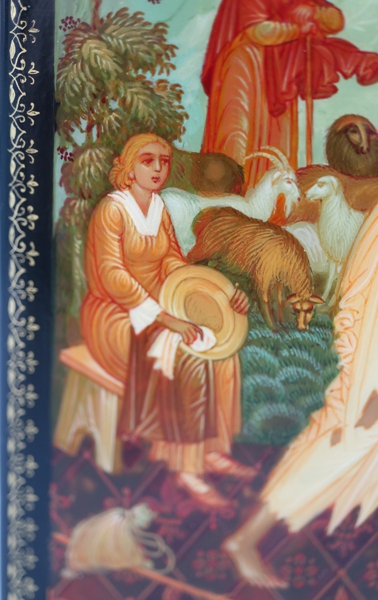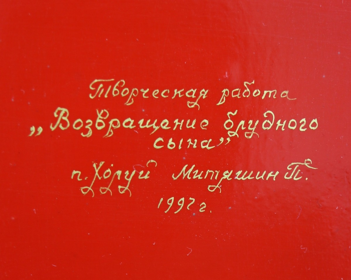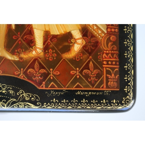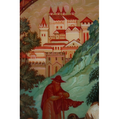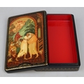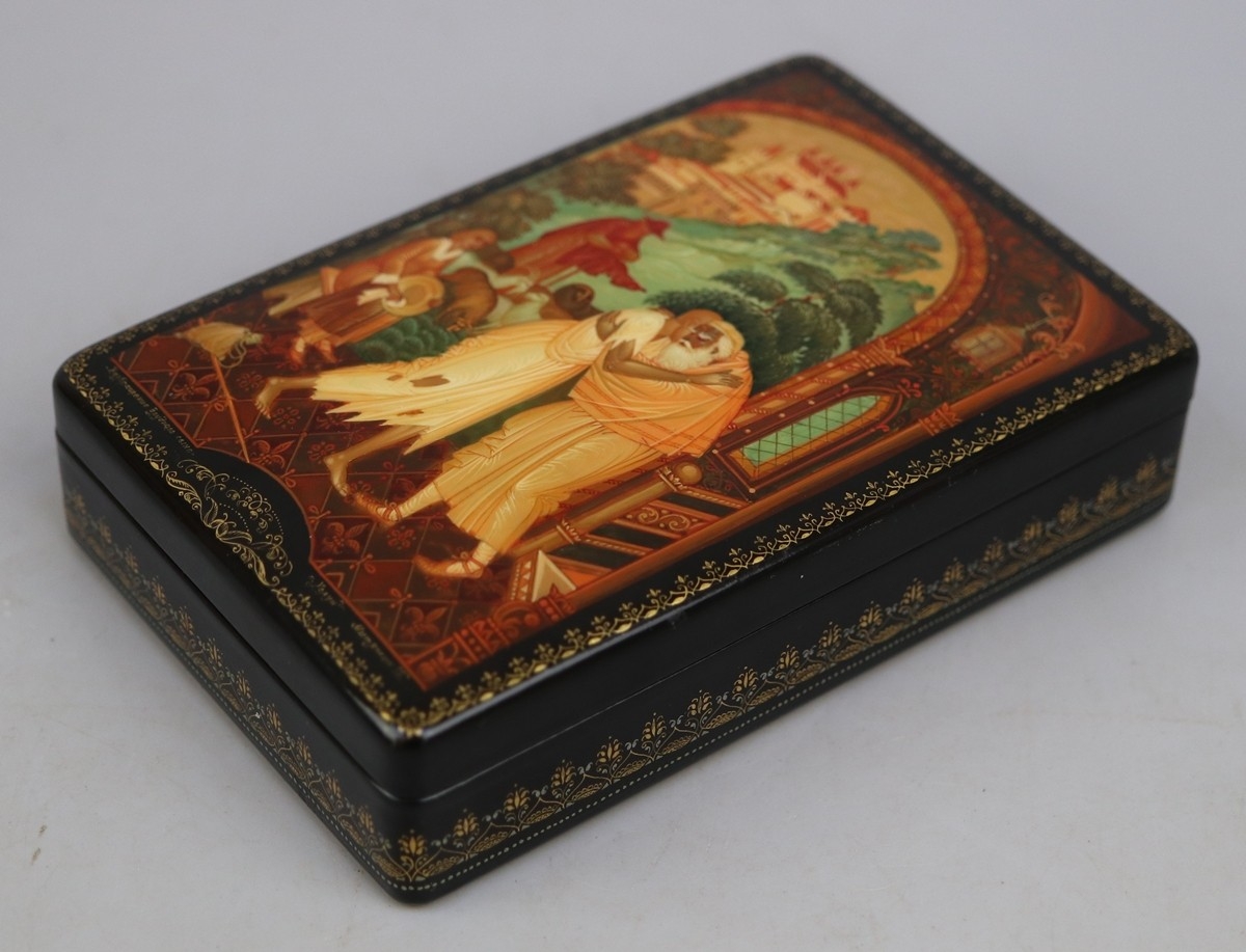 Hand painted Russian lacquered box depicting the Prodigal Son with documents - Approx 15cm x 10cm x 3.5cm