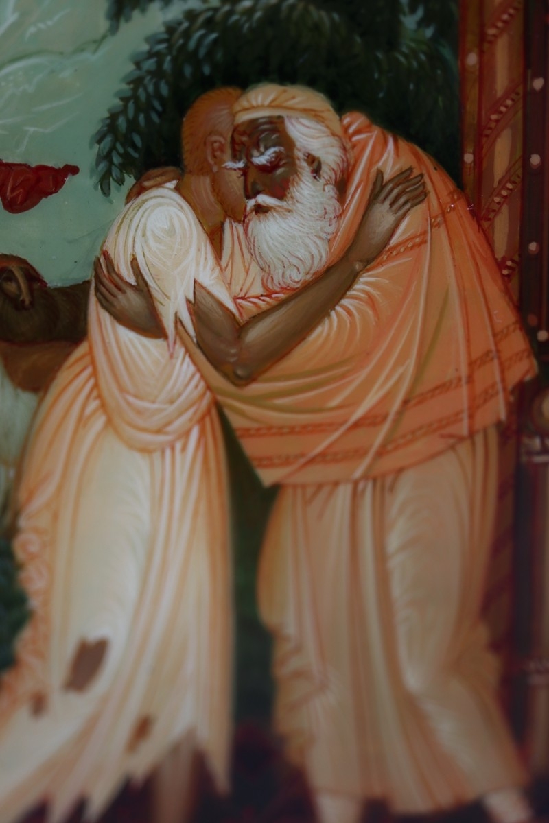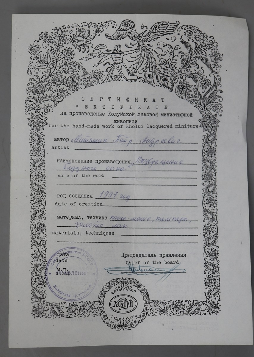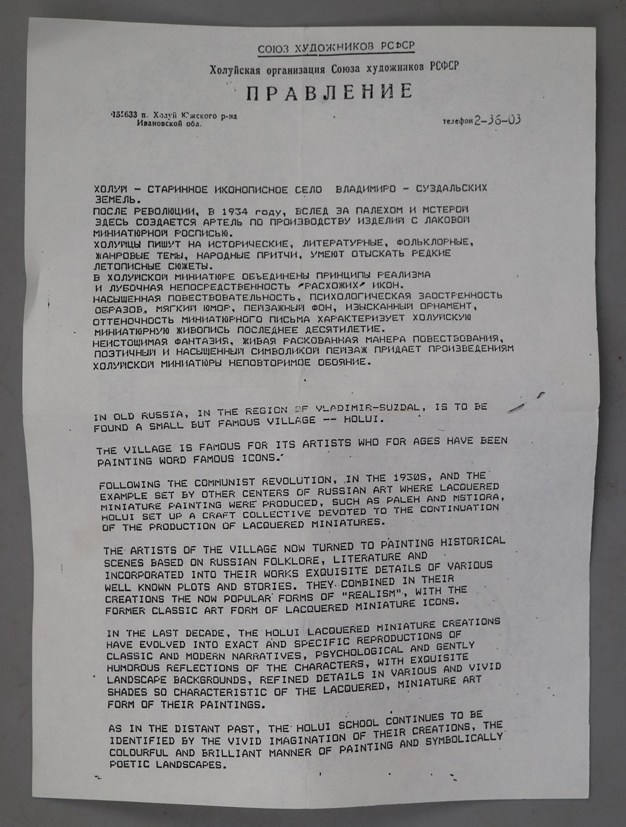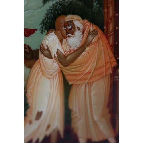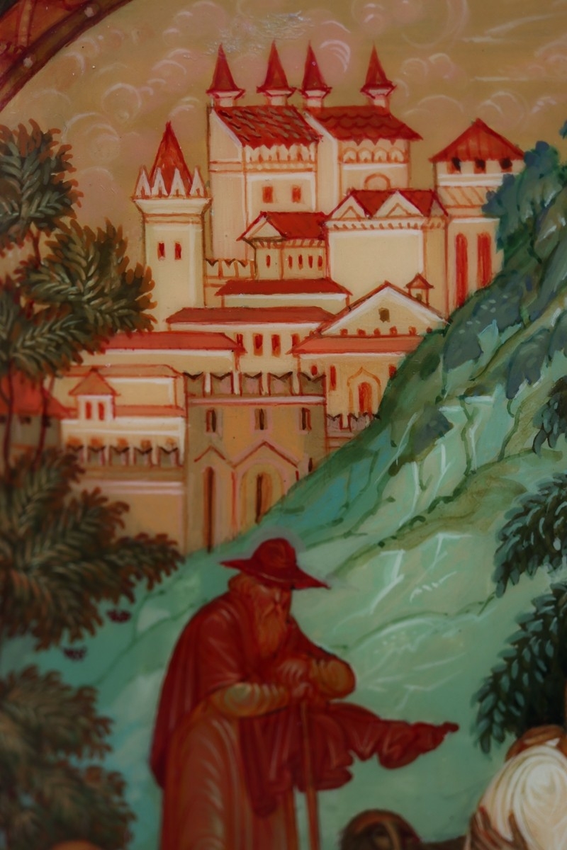 Hand painted Russian lacquered box depicting the Prodigal Son with documents - Approx 15cm x 10cm x 3.5cm