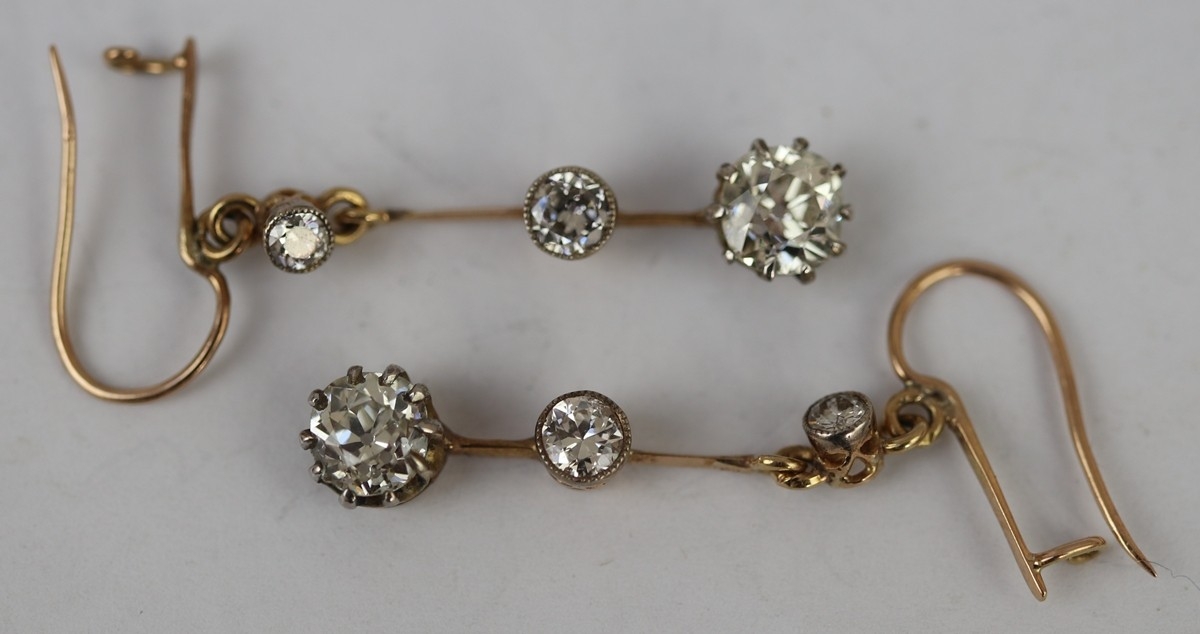 Pair of fine gold diamond drop earrings - Approx weight 2.9g