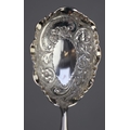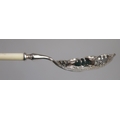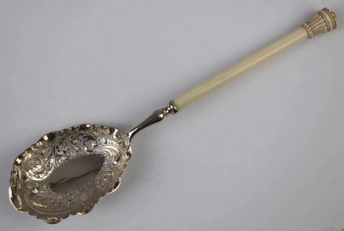 Chased silver serving spoon with bone handle
