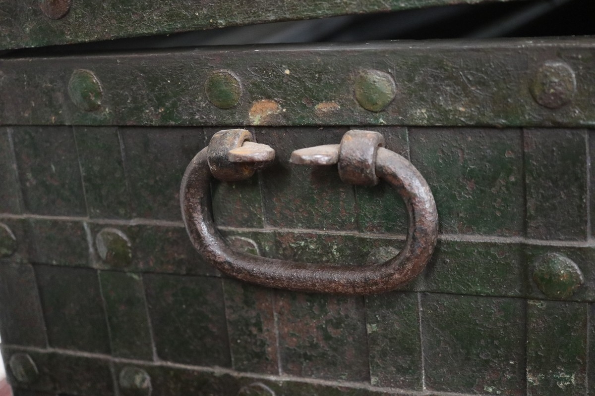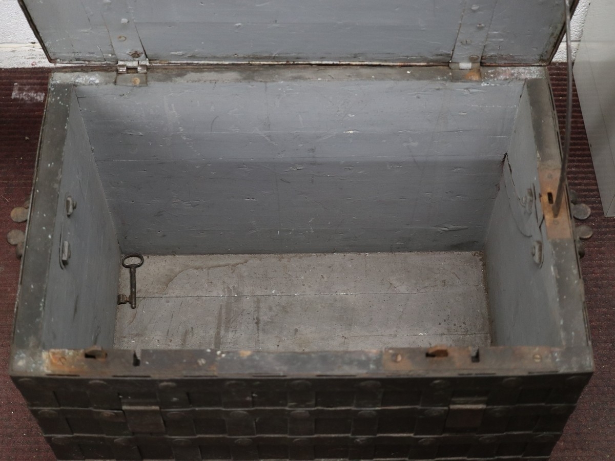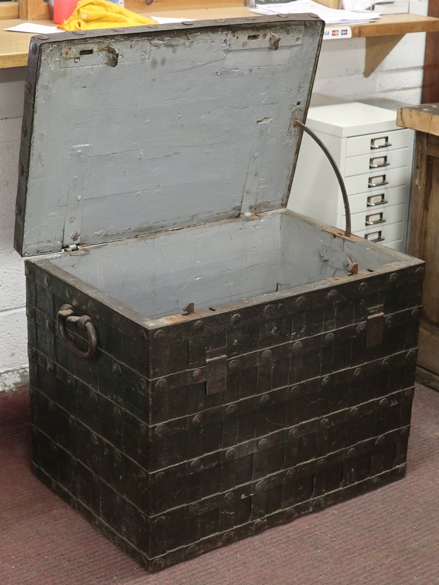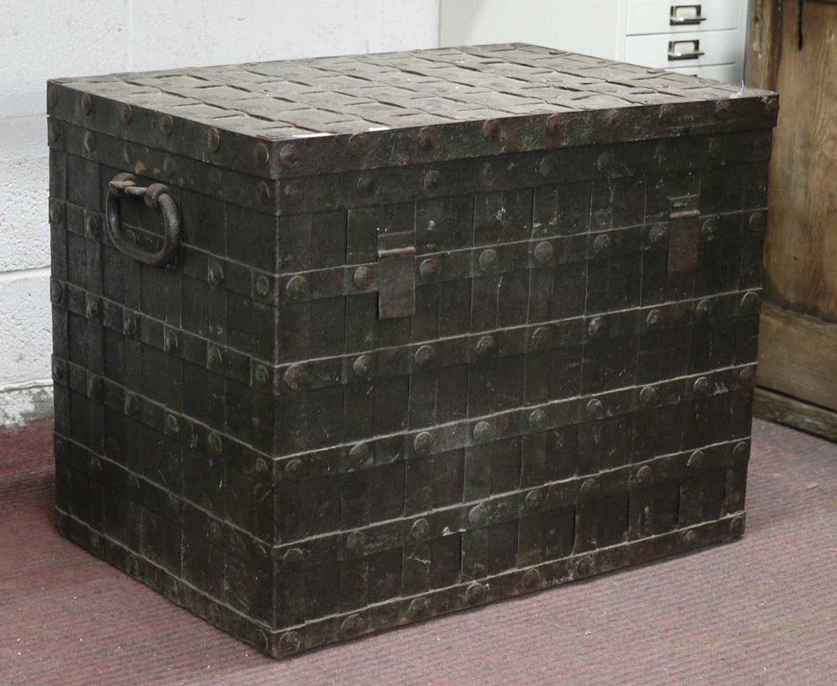 A large 17th century German iron bound Nuremberg strong box/Armada chest complete with its original key circa 1660 - Approx W: 74cm D: 51cm H: 58cm