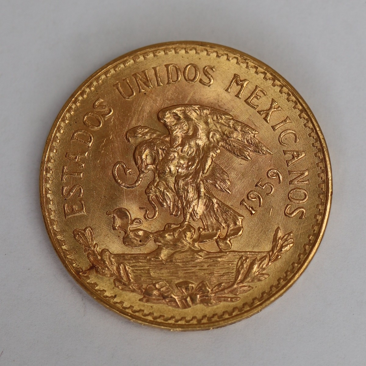 1959 Aztec Sunstone 20 Peso Gold coin of Mexico .900 purity ...
