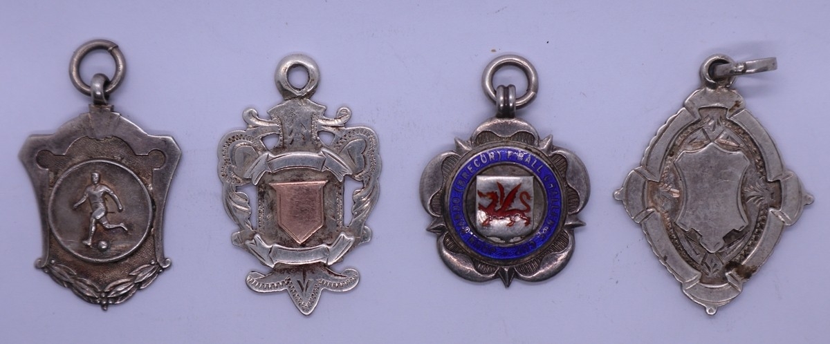 Four hallmarked silver sporting medallions. Gross weight 33.5g approx