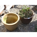 Two salt glazed round planters