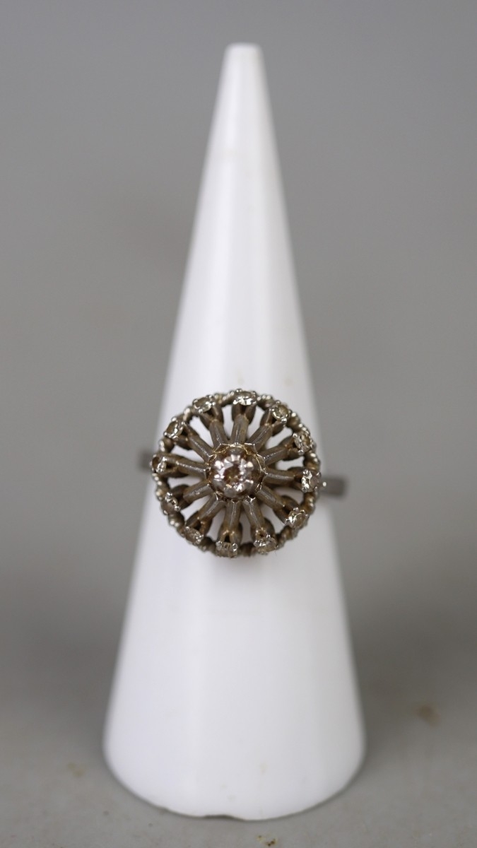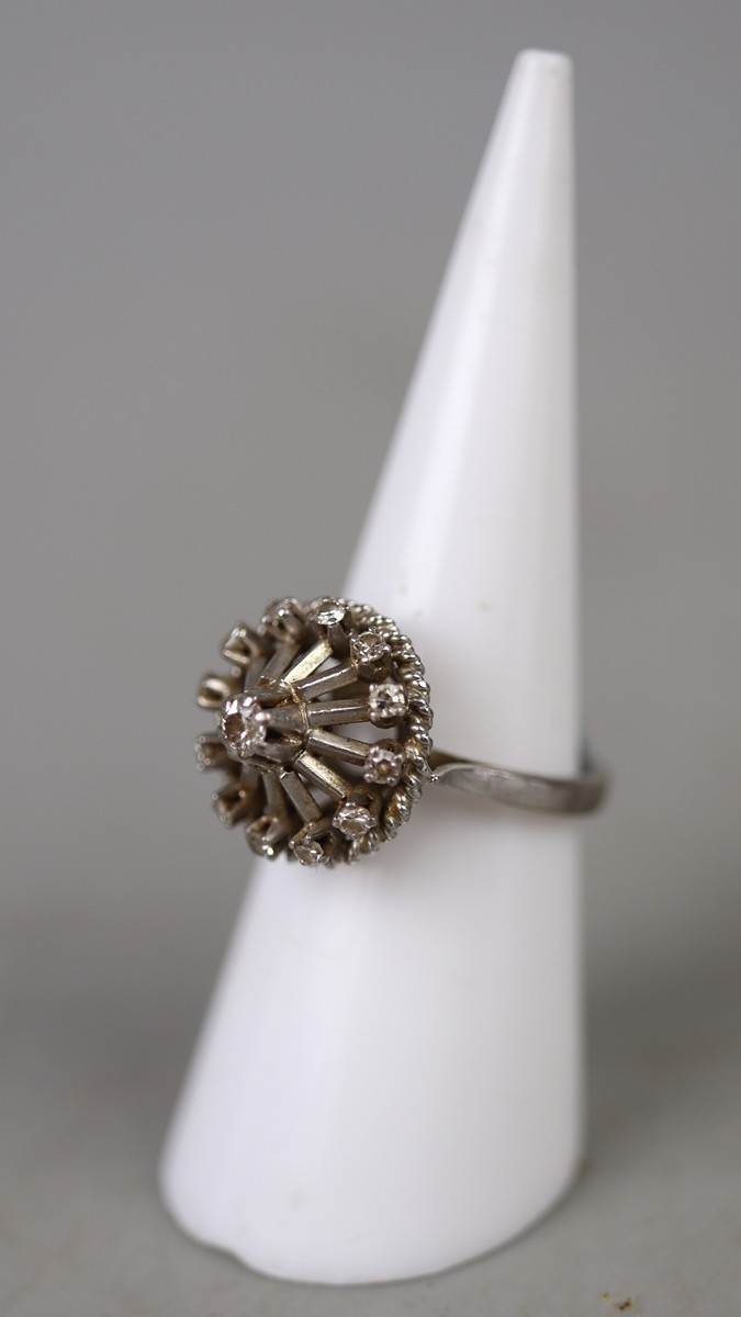 14ct white gold diamond set ring - Approx 4.4g - Size L