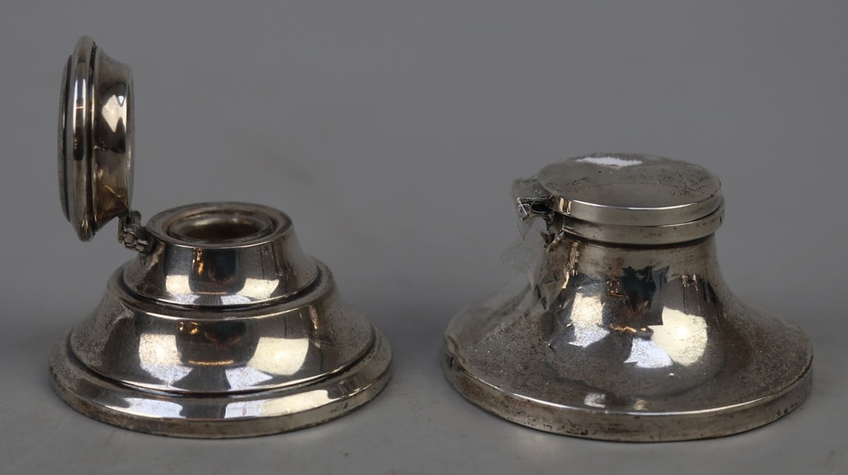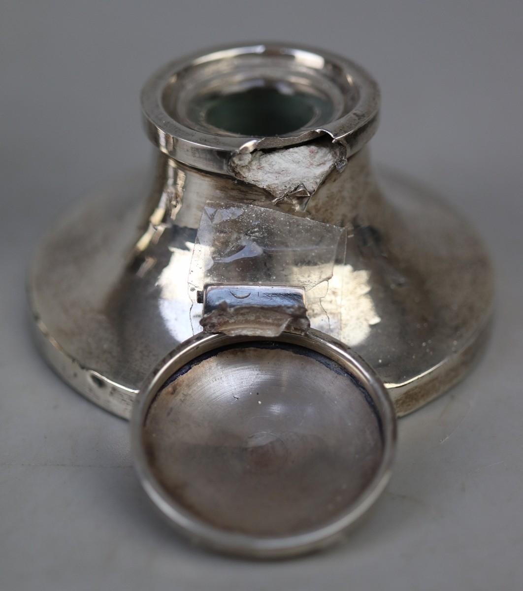 Hallmarked silver inkwell together with a hallmarked silver James Walker inkwell A/F
