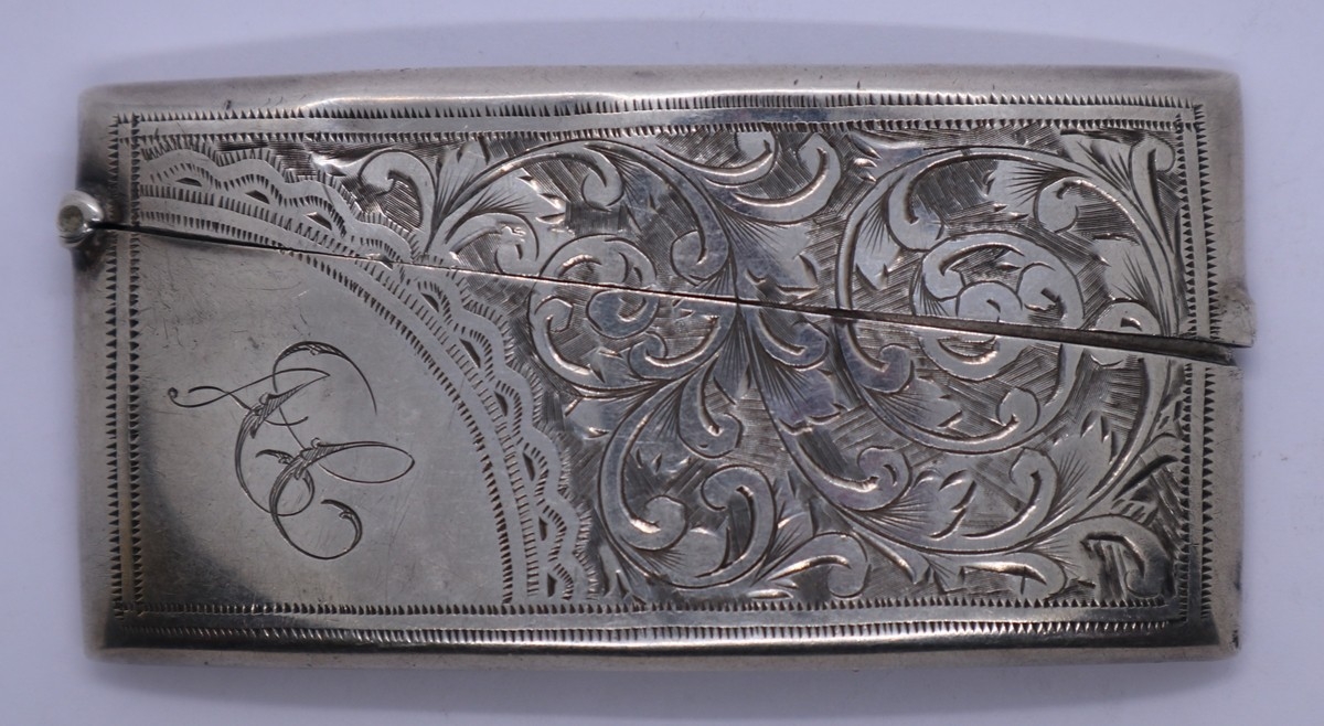 Curved silver hallmarked antique card case. 32g approx