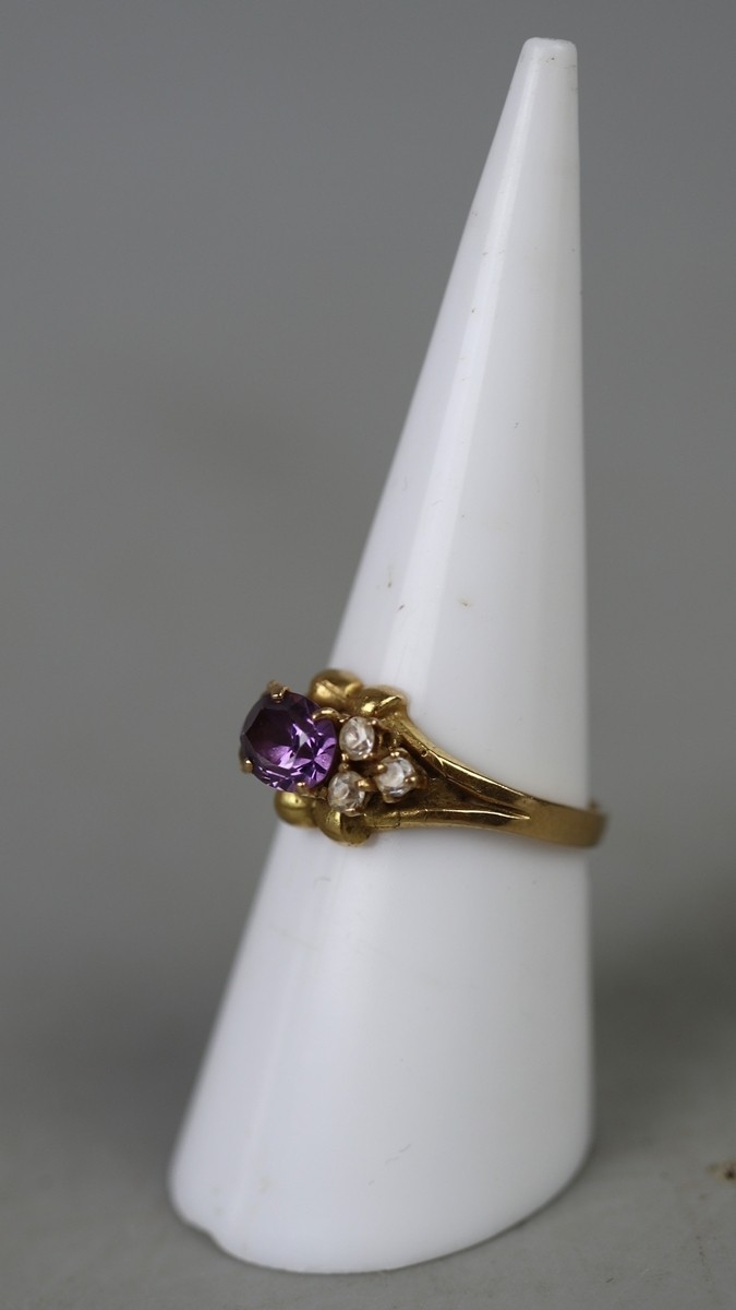 18ct gold amethyst and CZ set ring - Approx 3.4g - Size L