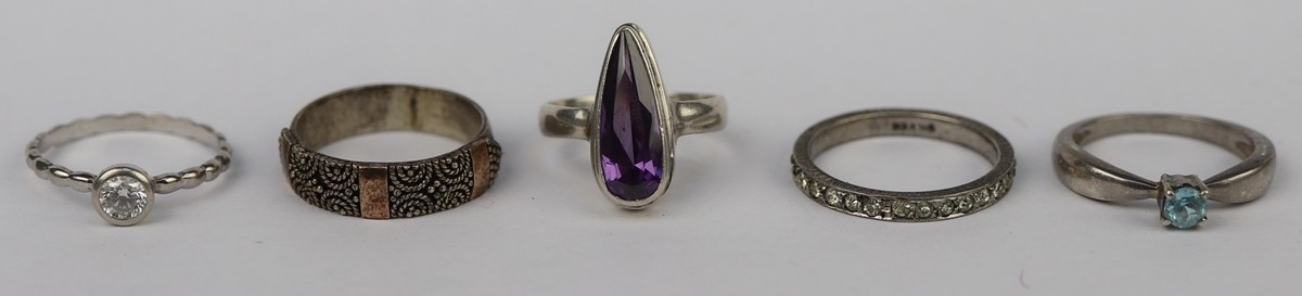 5 silver rings
